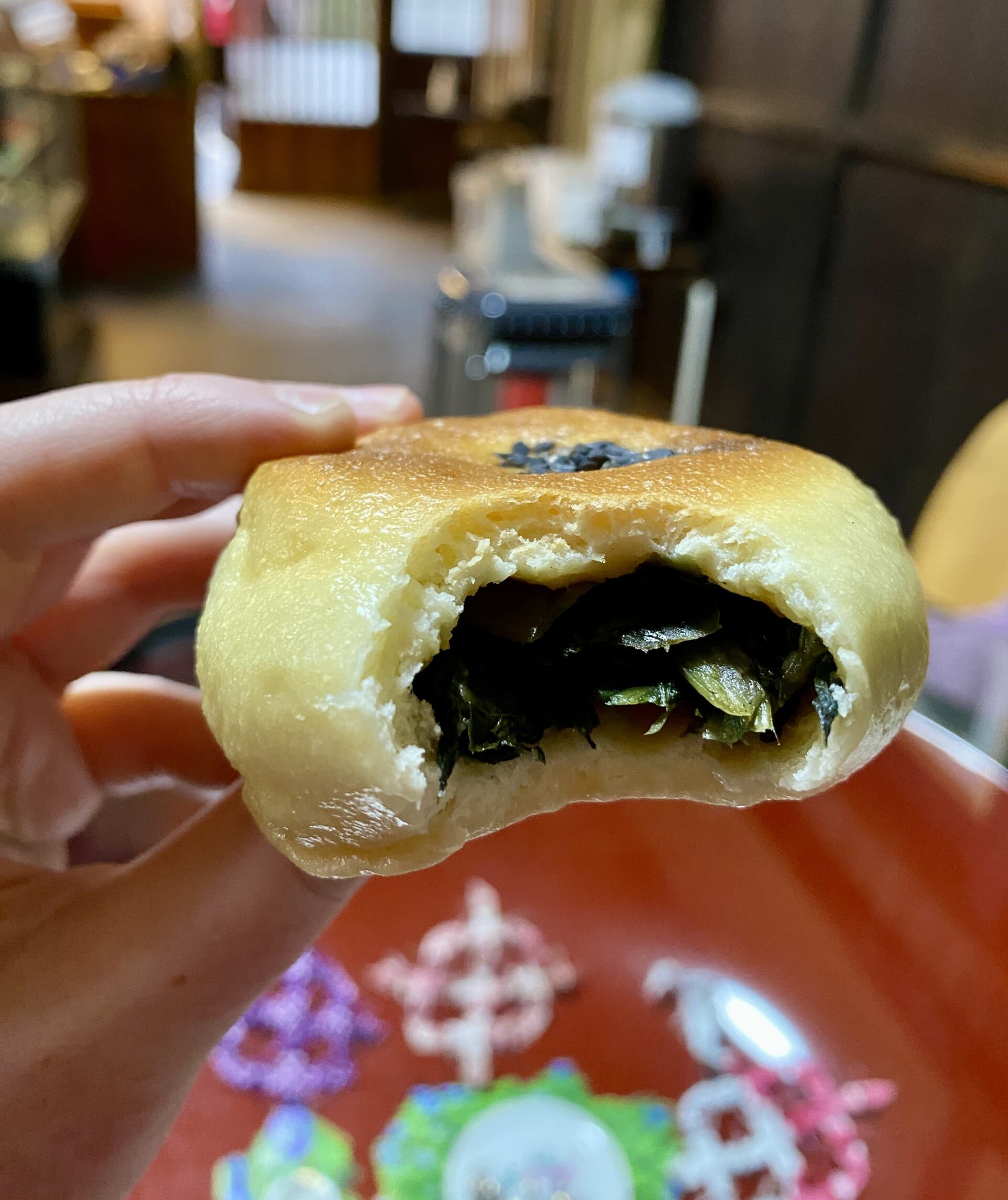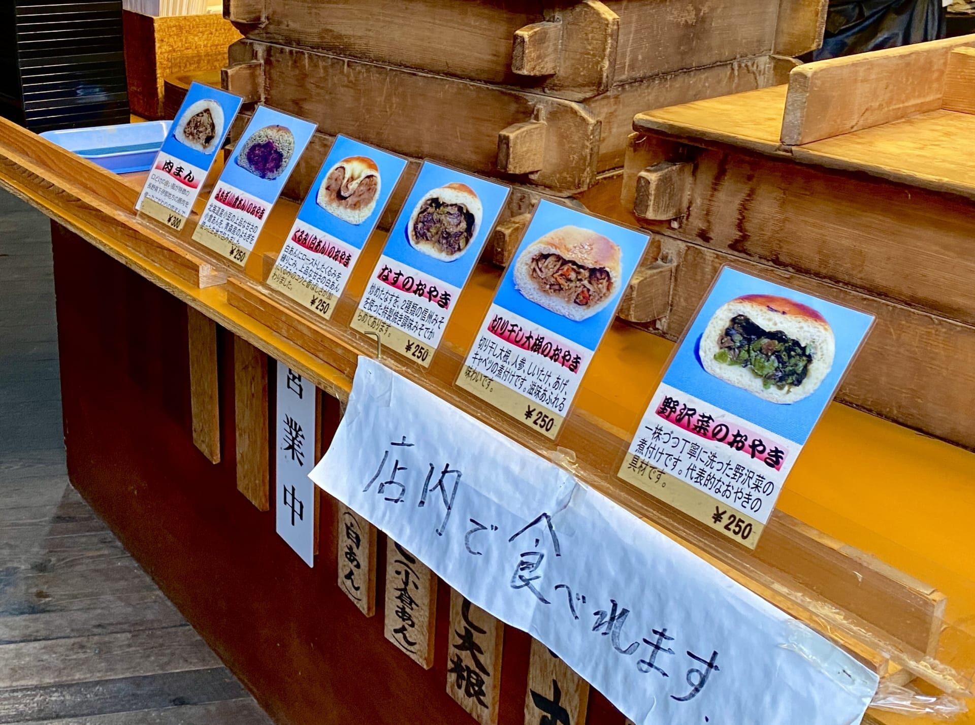As the snow began to fall, we warmed up with a local speciality: Nozawana Oyaki—a steamed vegetable bun filled with Nozawana leaves. Nozawana is a Japanese leaf vegetable with leaves that are harvested from October—December.