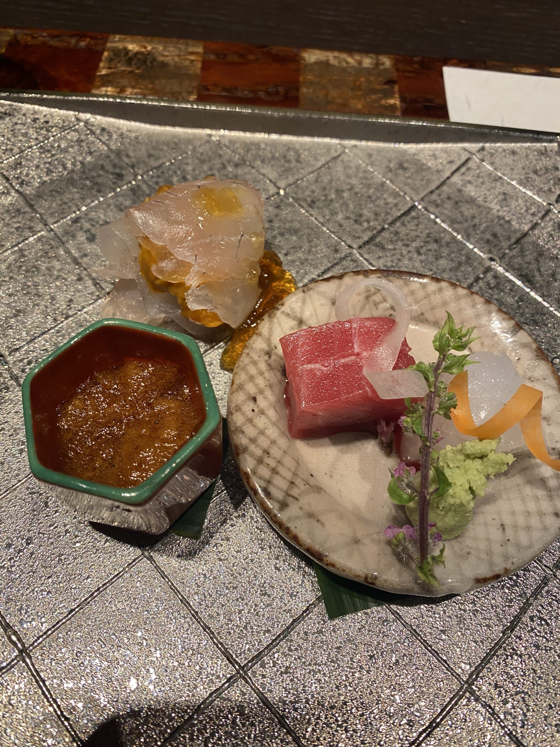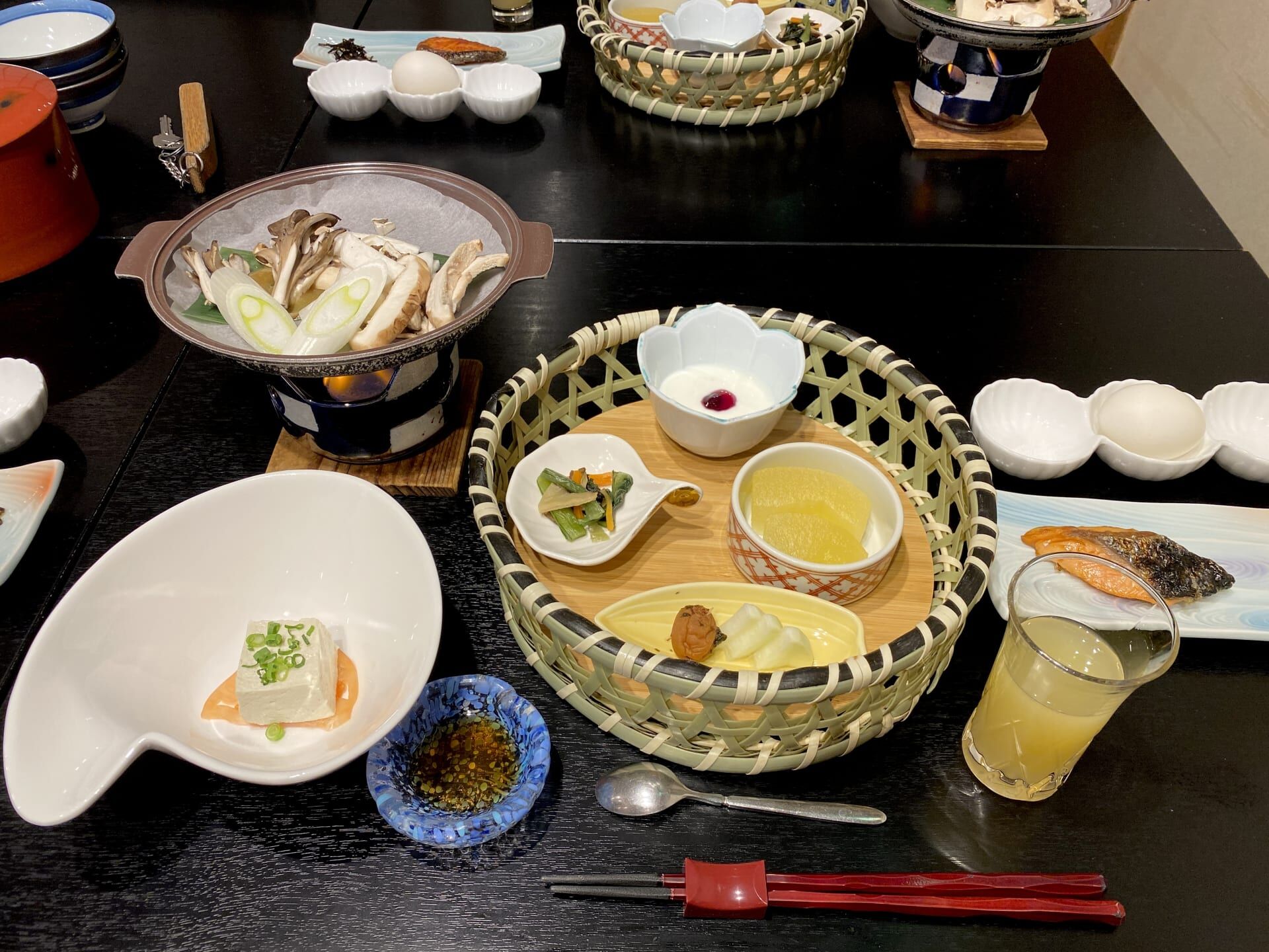 Dinner was a lovely twelve-course affair, with sashimi, seasonal mushrooms, fresh vegetables, and soup.